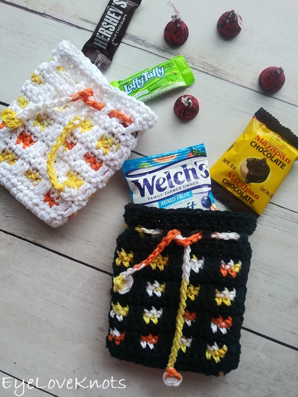 While this adorable little bag was originally designed to be a soap cozy, after finishing it, I couldn’t help but imagine it as a candy pouch perfect for Halloween parties or to hand out to trick or treaters. They are also great to use for small gifts, like a pair of spooky cute earrings.
