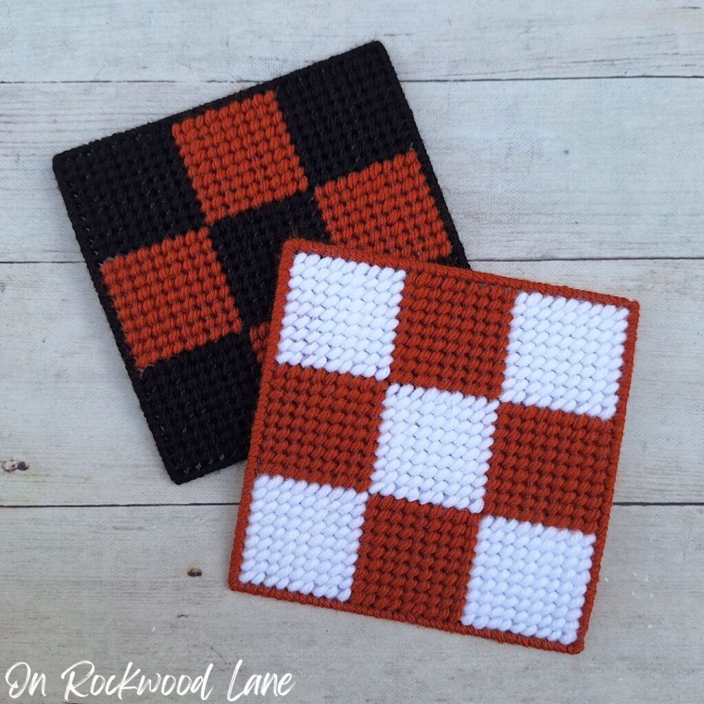 october 7TH – Day 7 – Chunky Checkered Plastic Canvas Coasters